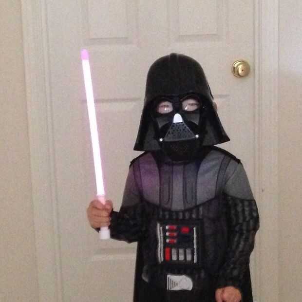 Mi hijo de cinco años quería ser Darth Vader para Halloween y se nos ocurrió este diseño simple sable de luz que fue bastante fácil para él montar con sólo una ayuda limitada de su papá. Aquí está un video explicando la construcción de tres minutos.P
