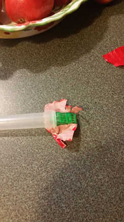 Ella obtenido un LED viejo de otro proyecto de los niños y hemos grabado en la parte de la mamadora de la baster. Encenderla y añadir la última parte de la cinta.