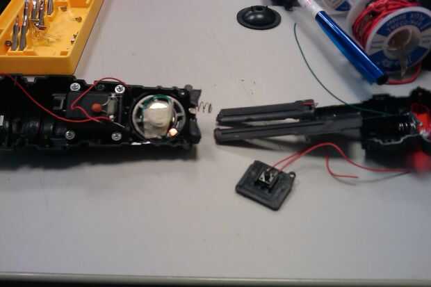 3. Corte el exceso de plástico en la cavidad para dar paso a la batería de 9v, montaje del tubo de acrílico y el interruptor