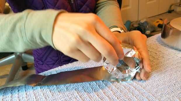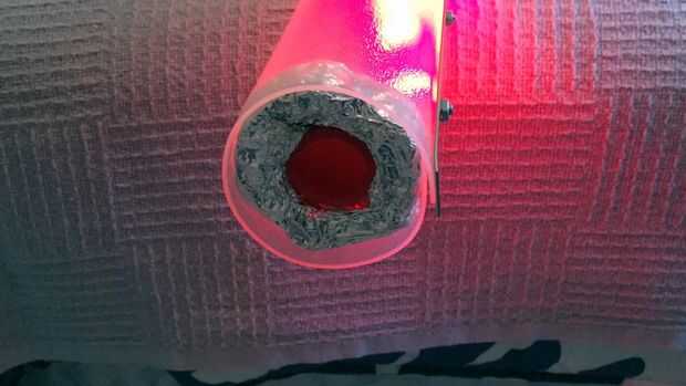 Por último, necesitamos una manera de proteger el medio tubo de PVC con la cubierta exterior. Intentado diferentes ideas (como tallarines de la piscina) pero terminó envolviendo el papel de aluminio en un círculo y envolver la cinta del papel de aluminio alrededor de eso. Esta es la única parte que no estamos tan seguros de. Funciona, y estábamos sin ideas así que lo dejamos estar. Pero sabemos que hay probablemente una mejor solución así que ser creativo con su propio!