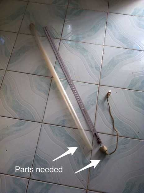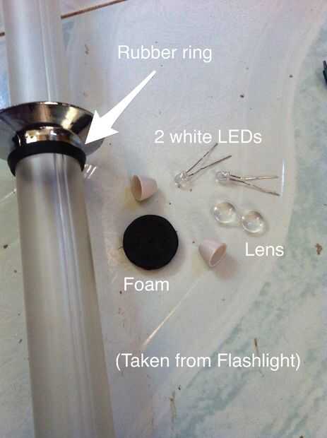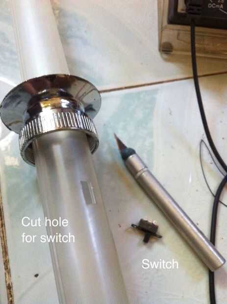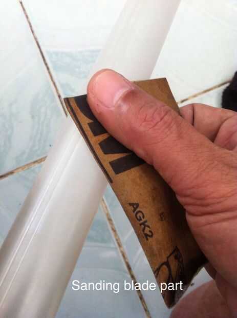 2 desde el p.tube usé es claro., necesito hacer como opaco posible-con el fin de difundir la luz emitida por la linterna LED. Primero lija la parte de la hoja usando papel de lija, dejando la empuñadura como es, prueba de la linterna en él si la luz se difunde y si estás satisfecho con el resplandor de la hoja con el haz LED. Luego pasar por LED lighting.if de la empuñadura no seguir lijar uniformemente.
