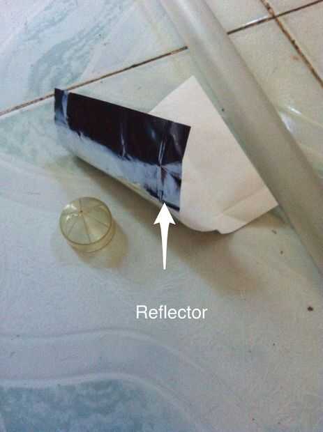3 el tapón del extremo superior de la p.tube podría ser redondeado o señaló., lo que lo es, es necesario hacer un reflector de chapa de aluminio. (la finalidad de este es ayudar a la hoja resplandor mucho más fuerte, reflejando nuevamente el haz de luz hacia abajo a través de la hoja.