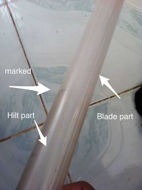 1 preparando la "cuchilla" tubo de policarbonato transparente la asignación de una longitud de 28 pulgadas de la hoja y dejando 11 pulgadas a la izquierda de la "empuñadura". (longitud total = 39 pulgadas)