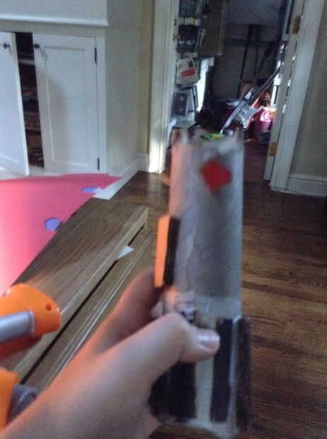 Mi hijo de cinco años quería ser Darth Vader para Halloween y se nos ocurrió este diseño simple sable de luz que fue bastante fácil para él montar con sólo una ayuda limitada de su papá. Aquí está un video explicando la construcción de tres minutos.P