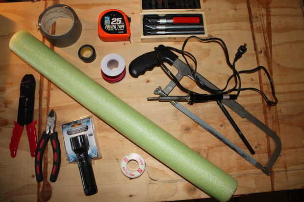 Fui a una tienda de dólar para comprar un fideo y un par de linternas. El resto de las cosas que tenía en el garaje. Esto es lo que usé: