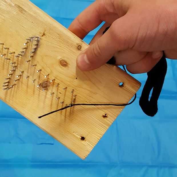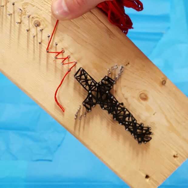 Atar el hilo alrededor de la primera uña. Siguiendo el patrón en la imagen (o que componen su propio!) cadena del hilo de bordar alrededor de las uñas y corte extra.