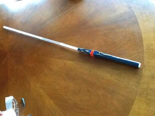 Necesitaba hacer un sable de luz para llevar a la batalla de sable de luz en San Francisco y tuvo una noche para hacer una. El siguiente realmente funcionó para mí puesto que no necesita ninguna herramienta y todo lo que tenía que hacer era montar la