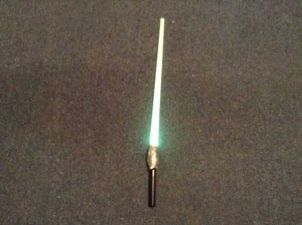 Necesitaba hacer un sable de luz para llevar a la batalla de sable de luz en San Francisco y tuvo una noche para hacer una. El siguiente realmente funcionó para mí puesto que no necesita ninguna herramienta y todo lo que tenía que hacer era montar la