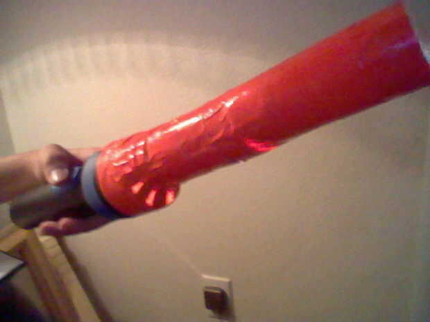 Necesitaba hacer un sable de luz para llevar a la batalla de sable de luz en San Francisco y tuvo una noche para hacer una. El siguiente realmente funcionó para mí puesto que no necesita ninguna herramienta y todo lo que tenía que hacer era montar la
