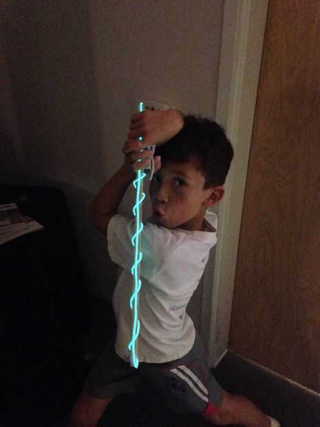Mi hijo de cinco años quería ser Darth Vader para Halloween y se nos ocurrió este diseño simple sable de luz que fue bastante fácil para él montar con sólo una ayuda limitada de su papá. Aquí está un video explicando la construcción de tres minutos.P
