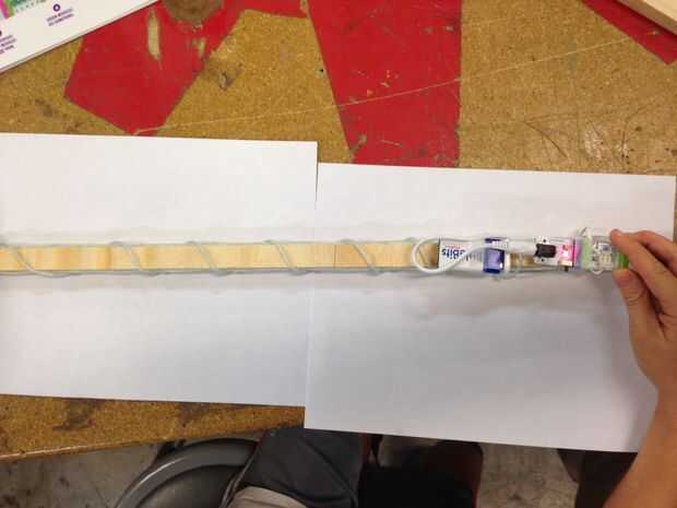 b) Envuelva el cable de luz con energía alrededor de su material de la espada