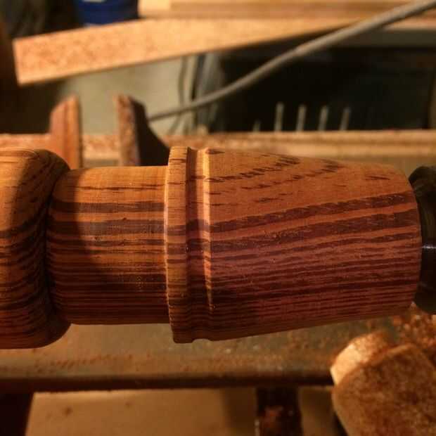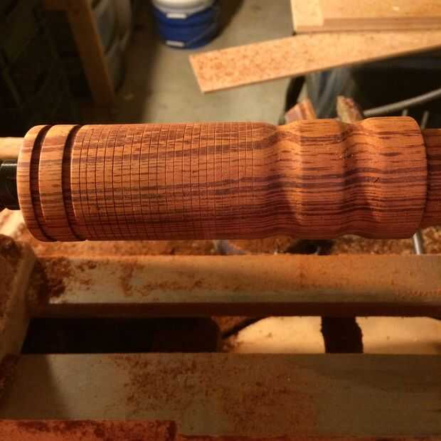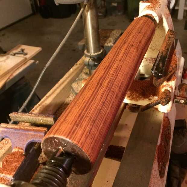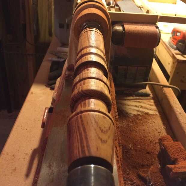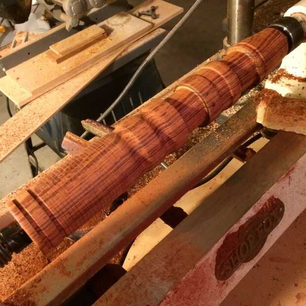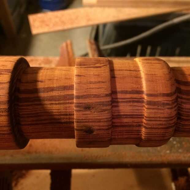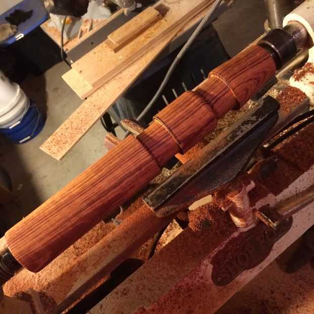 Para lograr esto, talló todas las secciones de 3 al mismo tiempo en el torno, con una sección más delgada en el lado de la punta y extremo. El diámetro externo es: