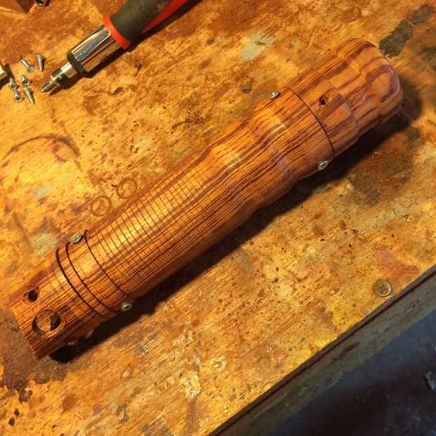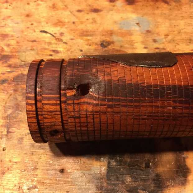 Taladre el agujero para el interruptor, también. Tomé un archivo redondeado a él para hacer una especie de chuleta oval para ella sentarse. Otro lugar donde usted quiere ser muy cuidadoso. No hay mucha madera para trabajar aquí, y tomando demasiado resultará en agrietarse al atornillar el interruptor en más tarde.