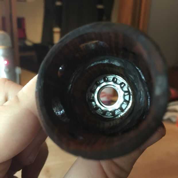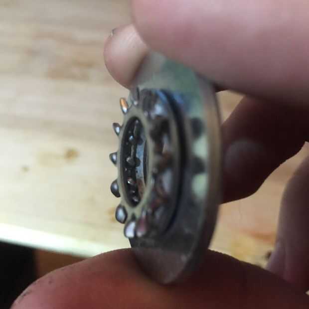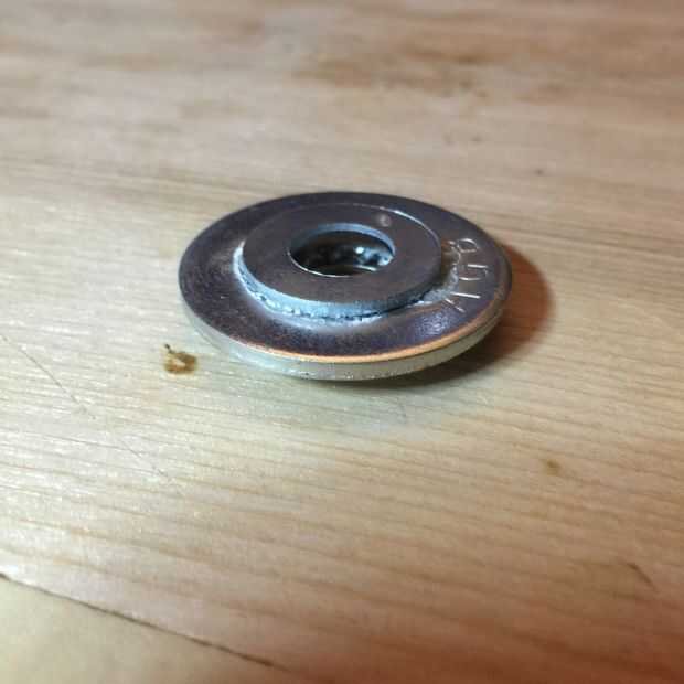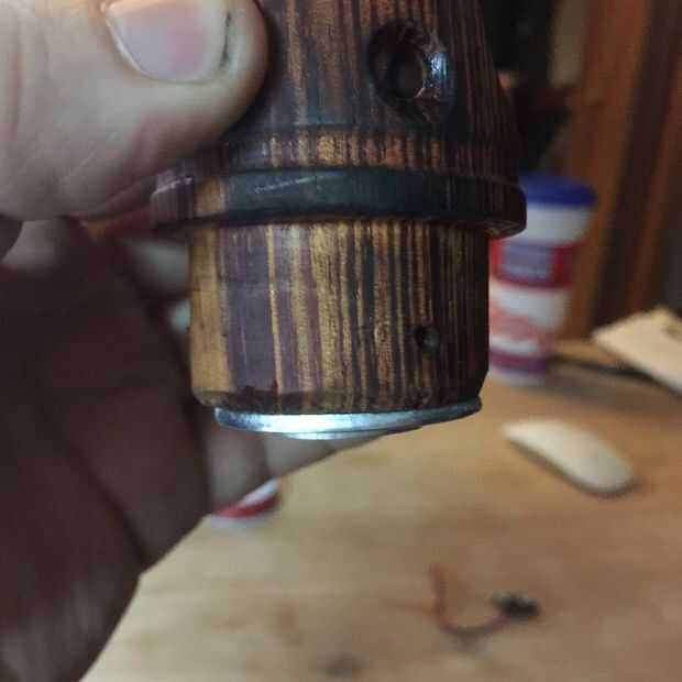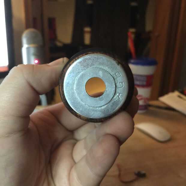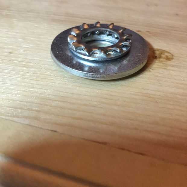 Esto es sólo un montón de arandelas, un dentado interior lavadora y una externa de los dientes de bloqueo bloqueo arandela, superglued todos juntos. Luego lo pegué en la parte inferior de la pieza de punta. El LED de 10mm se ajusta en la lavadora más íntima bastante bien, y una aplicación de pegamento caliente se cerciora de que permanece en su lugar.