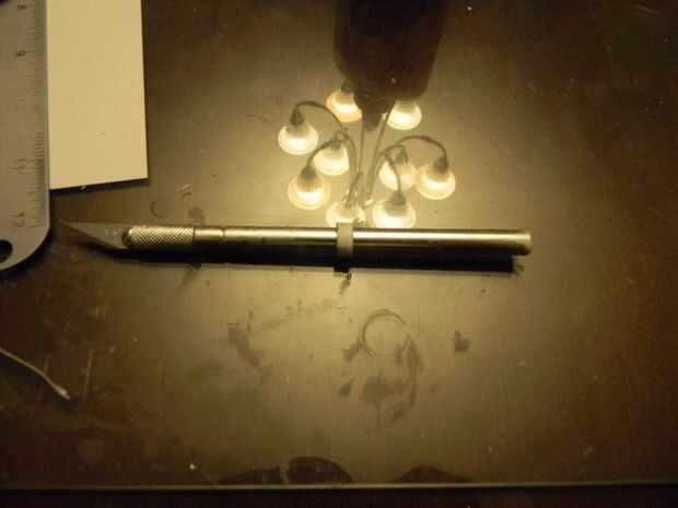 Finalmente la última decoración que une todo el proyecto. Para el botón corte una tira de papel 1/8 de pulgada de grosor y Envuélvala alrededor de un rotulador. Si no tienes un rotulador envolver algo que está cerca de 1/2 una pulgada de diámetro. Traza el círculo en un pedazo de papel y recortarlo. Pegamento en la parte superior del círculo. Este pegamento en el lado derecho de la manija en una pestaña en la corona. Ahora para la pieza última corte una tira del mismo grosor del botón y enróllelo alrededor de su mango de hoja x-acto. Este pegamento en el lado izquierdo de la manija otra vez en una pestaña de la corona. Y como se hacen!!!