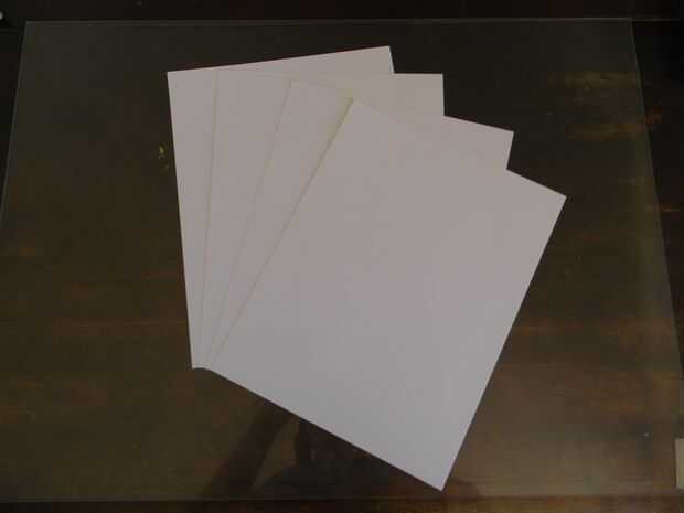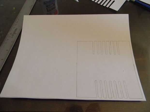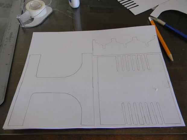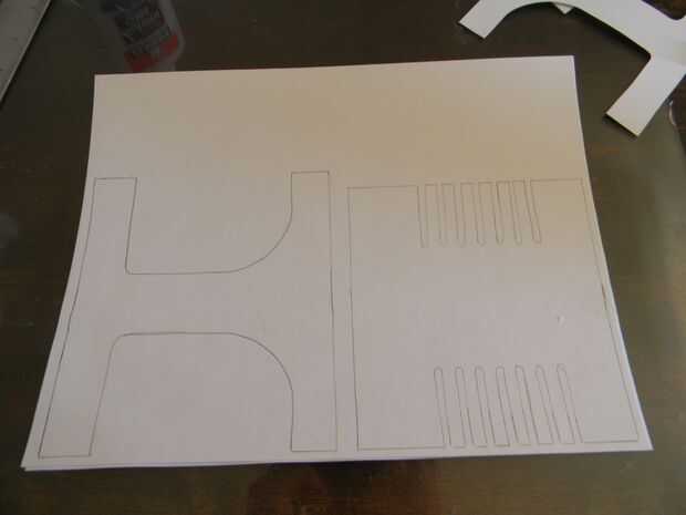 Lo primero que tienes que hacer es crear papel endurecido. Esto se hace por el pegamento que se separa en una 11 x 8,5 en 110 lb pedazo de papel (cartulina). para ello con cuatro hojas de papel para obtener el espesor adecuado. Si usas papel de 20 libras, puede que necesite hacer más capas. Situado bajo un objeto pesado mientras está secando. cuando está seco cortar las siguientes piezas y seguimiento ellos en el ahora endurecieron papel.