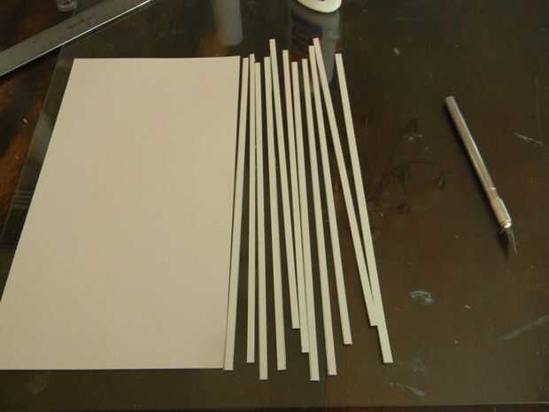 Medir y cortar 12 tiras de papel que son aproximadamente 1/8 de pulgada. desde el comienzo del labio envolverlos alrededor. Dar un pequeño espacio entre cada tira. Luego Mida y marque una línea 2 5/8 de la parte inferior del th del labio. Envuelva un pedazo pequeño en esta marca. Esto se utilizará más adelante.