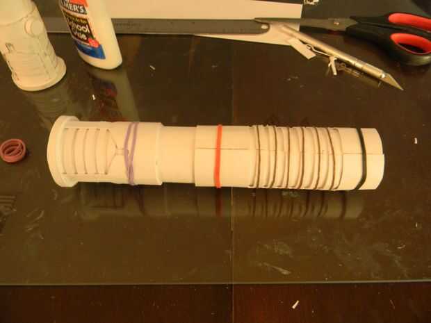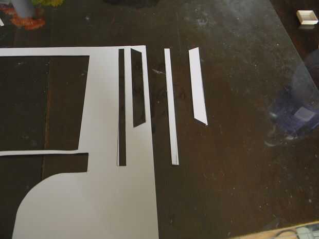 Luego viene la parte difícil. Es bastante sencillo. Corte la pieza con todas las pestañas pequeñas de la hoja grande de papel endurecido. Redondo hacia fuera tan es más fácil de pegar. Pegamento en el espacio grande en la parte superior y asegúrese de que alinee con la parte inferior del tubo. Si usted quiere, péguelo en de tal manera que las líneas se reúnen en el tubo a la parte conjoined. Usé gomas pequeñas para ayudar a mantener todas las pestañas pequeñas en el lugar. A continuación, la parte parece un voy a ir. Otra vez alrededor hacia fuera por lo que es más fácil de pegar. Pegamento en con las esquinas redondeadas grandes en la parte superior. Utilizar bandas de goma si es necesario. Si puede asegurarse de la parte plana de las piezas o parte posterior de las piezas se alinean con una ficha en la corona. Esto puede parecer insignificante ahora pero completa el aspecto del proyecto más adelante. Luego cortar las tiras pequeñas de dado y trazar a la izquierda sobre papel endurecido. Pegamento en el orden indicado. Asegúrese de que estén en la posición correcta y la orientación.