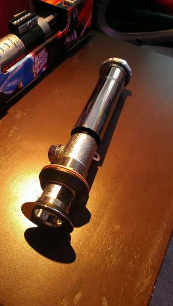 Construir un sable de luz de Star Wars inspirado con una visita a la nave de la plomería de mejoras para el hogar o ferreterías. Hay varias opciones de montaje de las piezas. Prueba de ajuste para determinar su preferencia. Mientras que se ha añadido