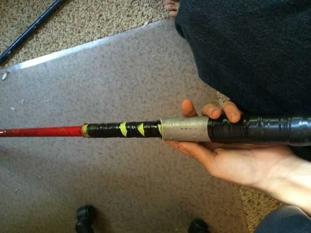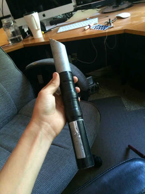 Mi hijo de cinco años quería ser Darth Vader para Halloween y se nos ocurrió este diseño simple sable de luz que fue bastante fácil para él montar con sólo una ayuda limitada de su papá. Aquí está un video explicando la construcción de tres minutos.P