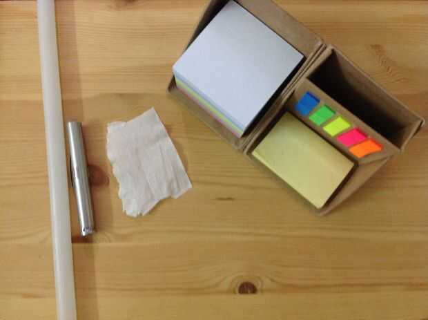 Un glowstick usado Una antorcha de la pluma Un gas estufa / encendedor Post su (marcadores) Tejido (lo más difícil de encontrar, usted puede ordenar en línea) Chocolates (opcionales, para energía extra)