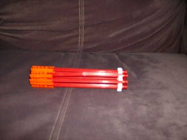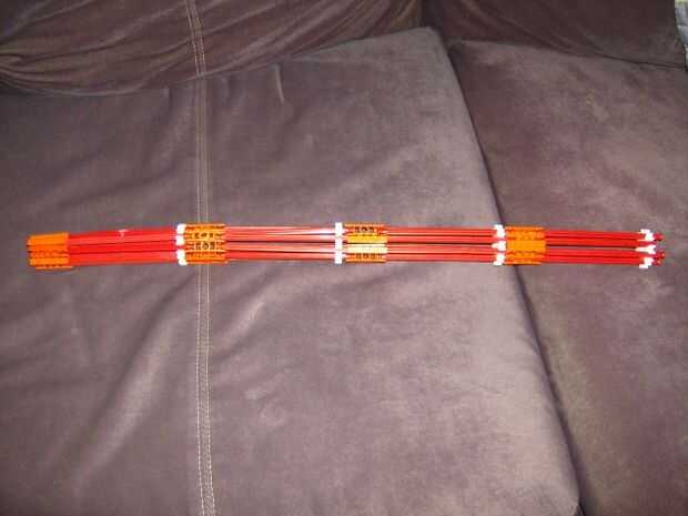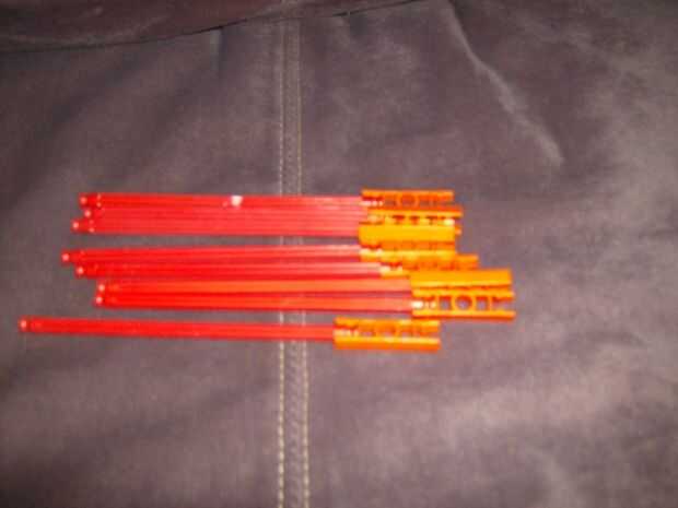 No estoy seguro, pero creo que esto se llamaría el sable. Es casi lo mismo que la construcción de las barras rojas 32 handle.he y el resto de los conectores. El sable de luz en la introducción se hace de cuatro secciones. Siga las notas de imagen para hacer uno. Luego hacer otra vez tres veces más.