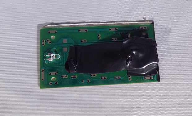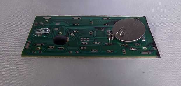 Pelar la cubierta del botón blanco apagado del mando a distancia, esto expondrá 3 tornillos de la PCB del mando a distancia... Sacar los tornillos... Extraiga la tarjeta de la caja... Luego retire la batería de la caja... Ponen la batería en la placa (en la orientación correcta) y la cinta hacia abajo como en las fotos...