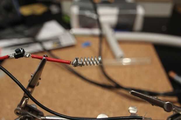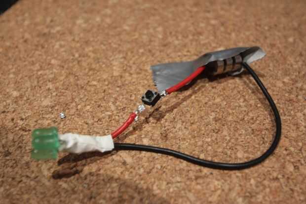 Extender la pata opuesta diagonal del interruptor click con otro cable rojo.