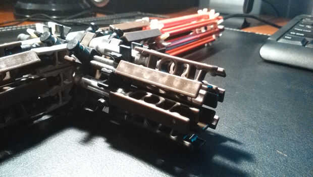 el título es exactamente lo que es. Para hacer el en la foto, se necesita: 32 barras rojizas, 32 conectores naranja, 6 conectores blancos y 8 varillas gris. Agradezco a agente harmsy por la idea. Por favor comenten!Paso 1: El mango La empuñadura de l