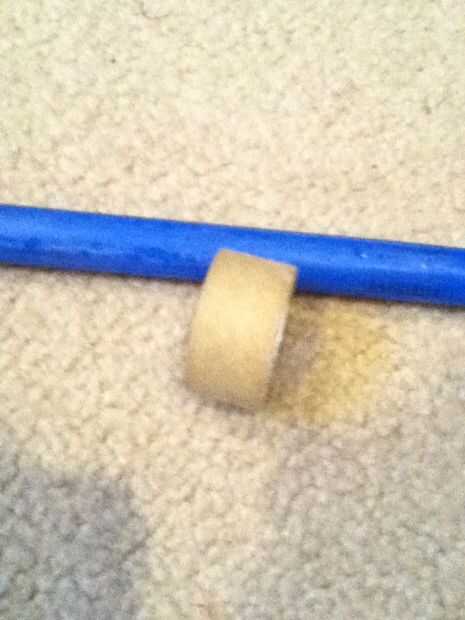 Tome su color sharkbite PVC y pulir el extremo que quiere ir en el mango. Así, el PVC coloreado se deslizará en más fácilmente, aunque todavía puede que necesite para darle unos buenos whacks con un mazo para se cerciora de que permanece en su lugar.
