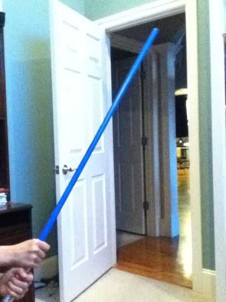 Necesitaba hacer un sable de luz para llevar a la batalla de sable de luz en San Francisco y tuvo una noche para hacer una. El siguiente realmente funcionó para mí puesto que no necesita ninguna herramienta y todo lo que tenía que hacer era montar la