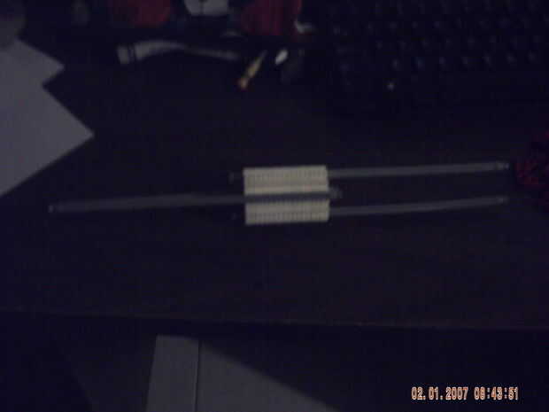 no brillante pero acabamos de terminar mi nueva doble cara con sables de luz. Es rojo y el empuñadura y el eje es de color gris.se necesita:40 barras rojo4 barras gris12 conectores blancoPaso 1: empuñadura y el eje para hacer el empuñadura y el eje C