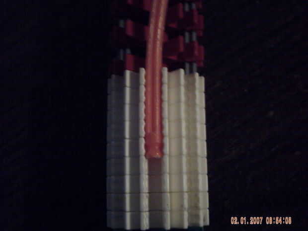 no brillante pero acabamos de terminar mi nueva doble cara con sables de luz. Es rojo y el empuñadura y el eje es de color gris.se necesita:40 barras rojo4 barras gris12 conectores blancoPaso 1: empuñadura y el eje para hacer el empuñadura y el eje C