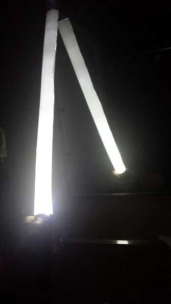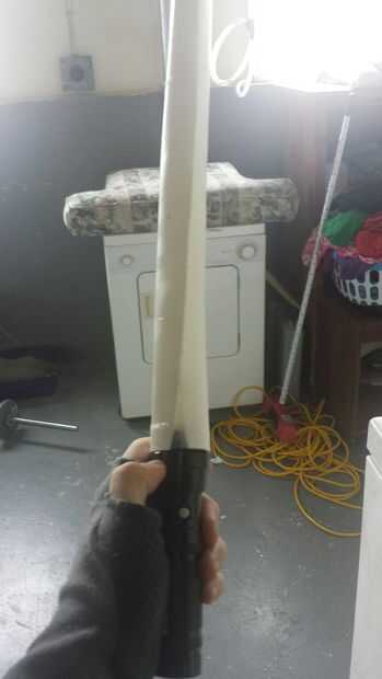 Necesitaba hacer un sable de luz para llevar a la batalla de sable de luz en San Francisco y tuvo una noche para hacer una. El siguiente realmente funcionó para mí puesto que no necesita ninguna herramienta y todo lo que tenía que hacer era montar la