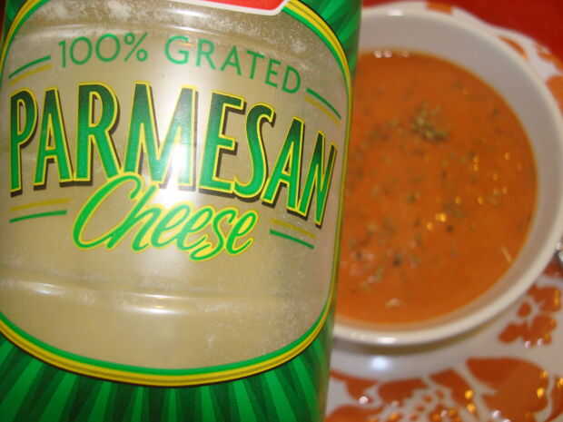 Rociar el aderezo italiano, parmesano y pimienta a cada plato de sopa si se desea.