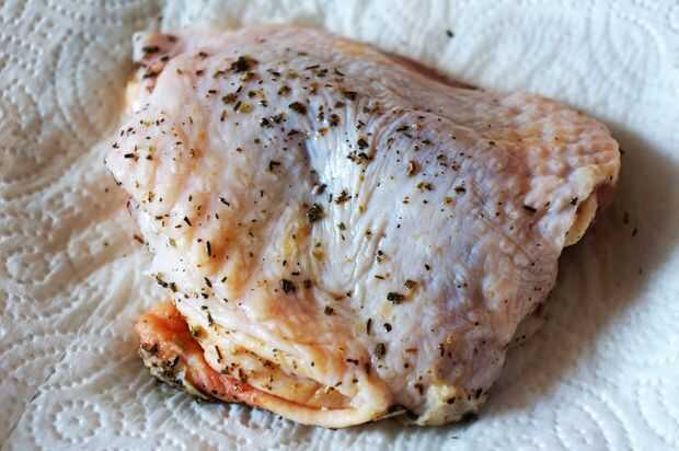 Coloque el pollo sobre una toalla de papel y acaricíele seca.