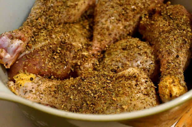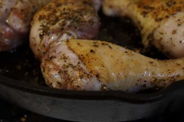 Aceite, temporada y cocine el pollo en la sartén de hierro fundido o el método de su elección.