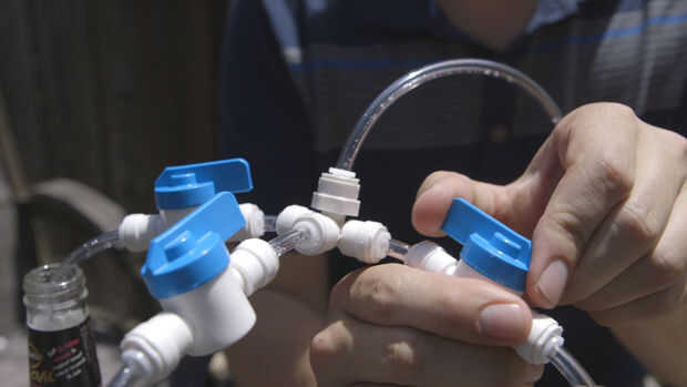 De montar, simplemente presione el tubo hasta que se detiene. Ahora es el momento para abrir unas botellas y comienzo mezcla-con 3 bebidas obtienes 9 posibles combinaciones de sabores!