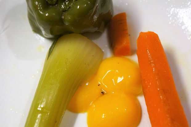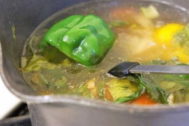 Sabía que yo estaría utilizando las zanahorias y los pimientos para hacer pimientos rellenos, así que corte el fondo del pimiento y retirar las entrañas. Tiraron en el agua hirviendo "toda" para diez minutos y luego me quité. Me metía bajo de potenciadores del sabor sopa y sopa enfriadores por lo hacía también.