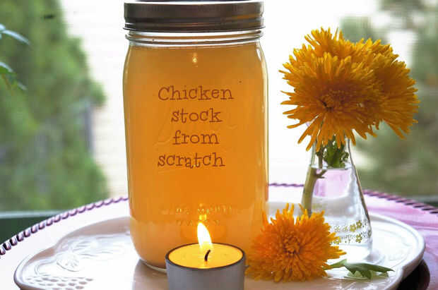Caldo hecho en casa: pollo, tomate, vegetales o carne de res