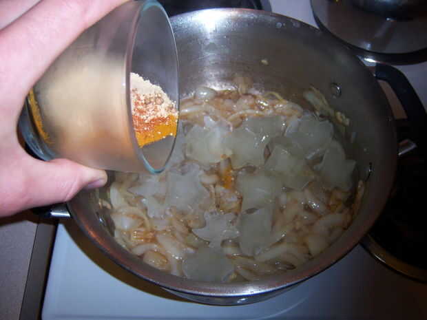 (En este punto me di cuenta que no tengo suficiente lentejas, así que añadido algunos quinua, que resultó de gran.)