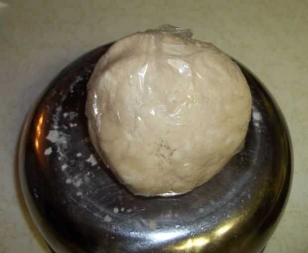 Forma la masa en una bola y envolver en papel plástico.  Ponga la bola de masa en el refrigerador mientras trabaja en el relleno.
