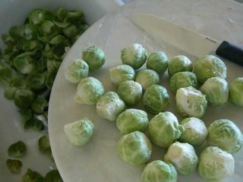 Sabrosas coles de Bruselas (2 / 12 paso)