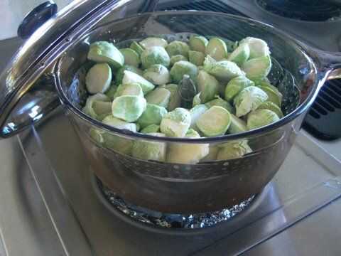 Sabrosas coles de Bruselas (4 / 12 paso)