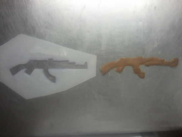 Este es mi primer post y es bastante sencillo. Esta teja que hice en un día lento en el trabajo. Sabrosísimas son galletas delicadas muy finas, que generalmente se utiliza para decorar postres. Tienden a formarse en forma de triángulo pero pensé que me gustaría probar algo diferente. Así que aquí te traigo la merienda dulces favorita de cada líder despótico, AK47-teja.