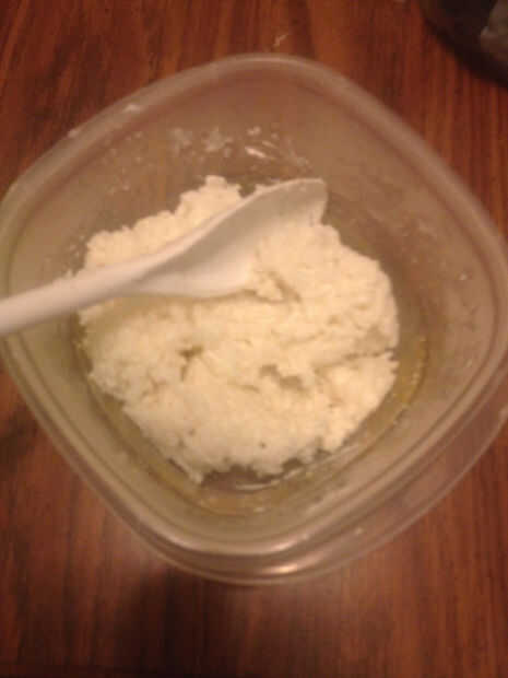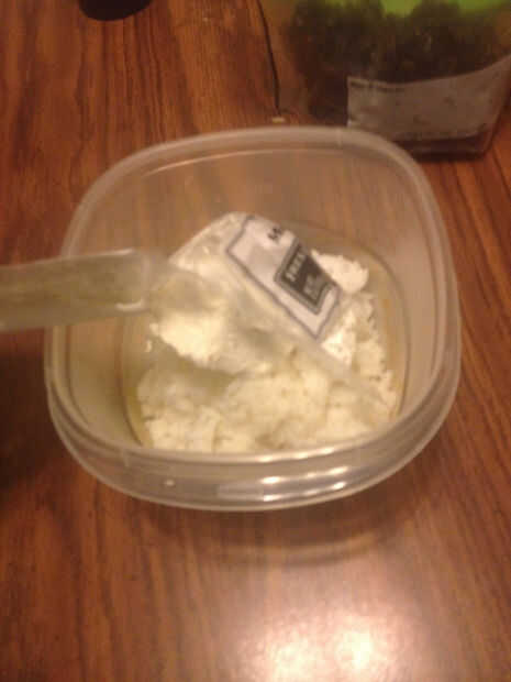 Como mencioné, tropezó en ella a la hora de la cena y utilizar lo que quedaba del arroz, pero básicamente, utiliza todo el queso en aprox. 3 tazas de preparado de arroz. Se trata de un queso blando, por lo que se derrite y asimila en el arroz.