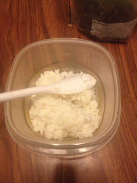 Agregue el queso hasta que quede bien es mezclado con el arroz. Está envasado en un paquete de 4 oz, así que no hay necesidad de almacenar, a menos que quiera ahorrar un poco de queso para merendar en otra cosa.