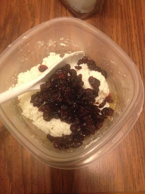 Un pequeño secreto personal. En realidad compré este particular queso en accidente. Yo no estaba prestando atención cuando estaba en mi tienda de queso favorito y pensé que estaba comprando el llano cabra queso, que tenía otros planes. He comprado este queso antes y encontró el sabor un poco demasiado fuerte para mí. Pero cosas que se comprar en esta tienda en particular, no se arrepentirá y que no voy a tirar un buen queso. Yo tenía que pensar en términos de "ingrediente", primero mezcla el queso con el arroz y pareció muy sabroso, pero falta algo. Luego recordó los arándanos secos y agregó y quedó prendado al instante.