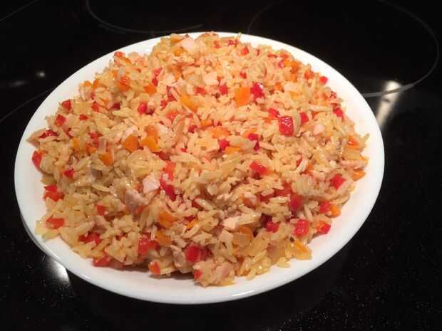 Sabroso arroz jazmín y pimiento