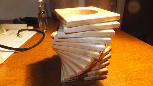 15) después de que el pegamento se seca, proceder a lijar. (los lados no deberían necesitar cualquier si usaste la cantidad correcta de pegamento, y si no, el pegamento probablemente se filtró hacia fuera y necesita a la mano arena lejos de lijado). Arena muy superior e inferior del bloque de espiral del youre por lo que la espiga quede al ras con el azulejo.